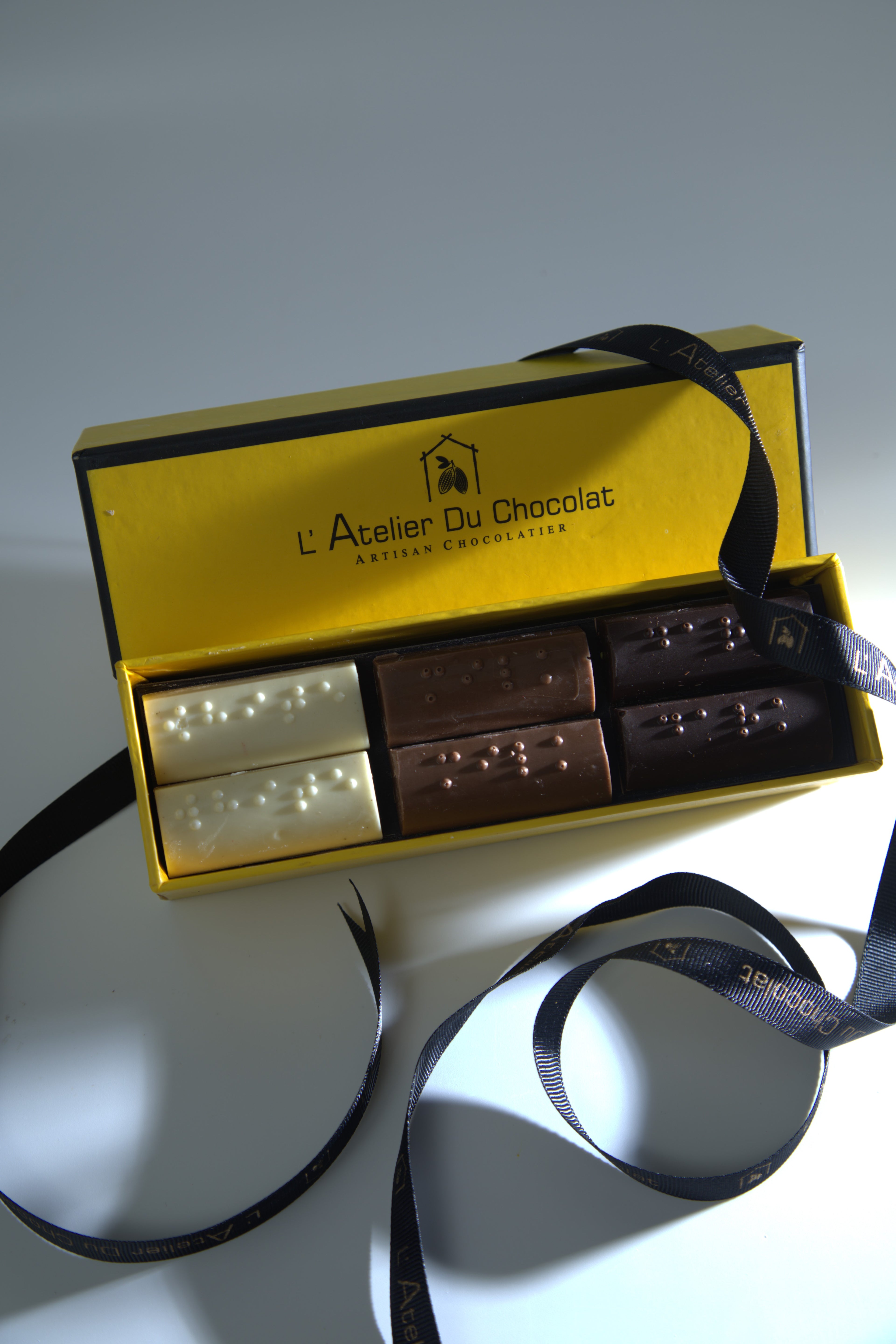 Presenting exclusive handcrafted Braille collection by Atelier Du Chocolat, a celebration of craftsmanship, connection, and consciousness. Designed to enchant the senses and transcend barriers, each chocolate is a luxurious expression embossed in Braille, making every box not just a gift, but a gesture that speaks without saying a word.