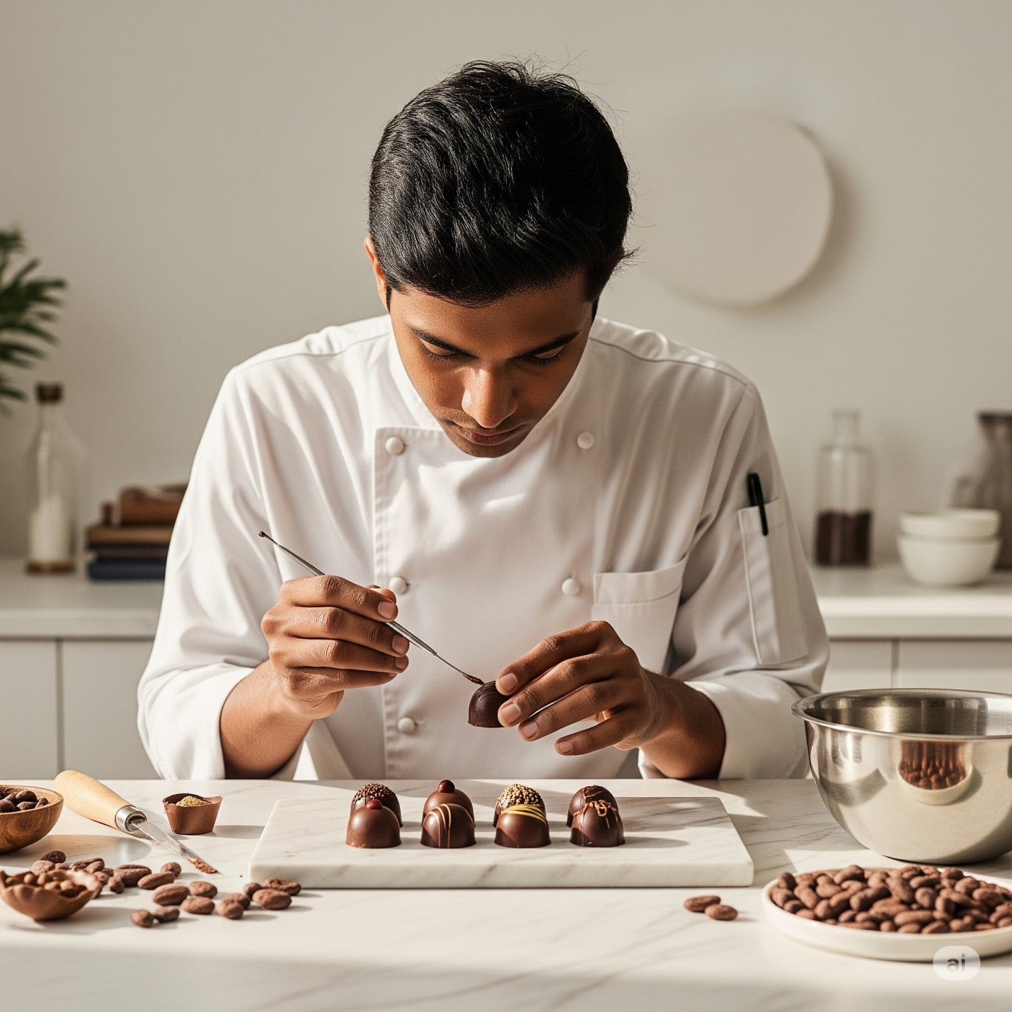 At Atelier du Chocolat, true mastery lies in the details, in the slow processes, the quiet precision, and our unwavering commitment to purity. Every creation is crafted fresh to order, entirely in-house, and always from scratch. We don’t believe in shortcuts, only in the art of doing things right. From tempering techniques to flavour infusions, every step is a deliberate act of care and craftsmanship.